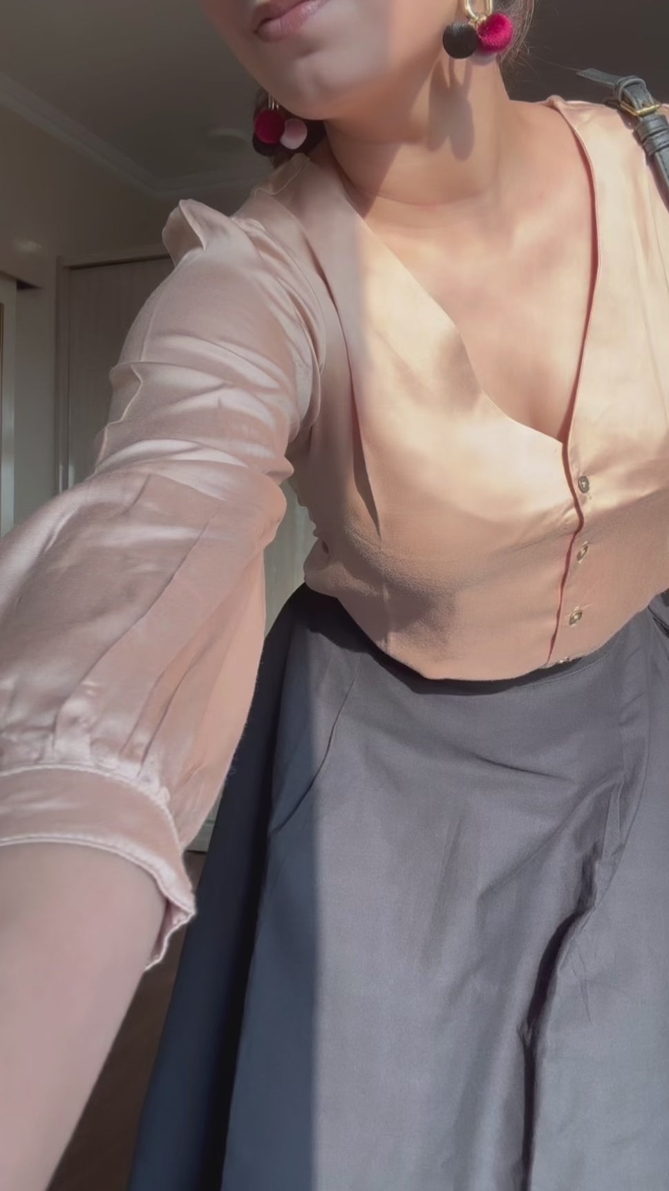 Exude power in this golden satin blouse which has a modest V-shaped neckline with a straight silhouette. A must-have staple for your board meetings and date nights!
