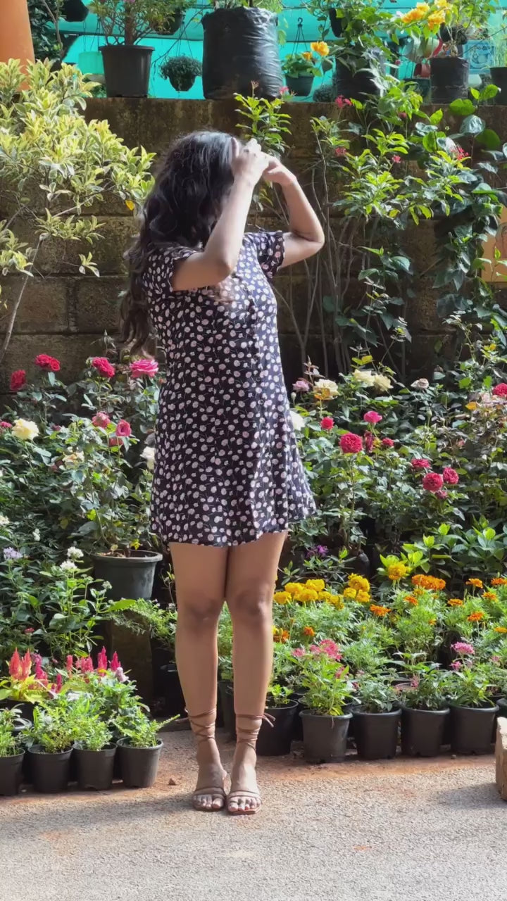 This floral buttoned dress has a modest neckline with short sleeves and is a perfect knee length piece to welcome the weekend.